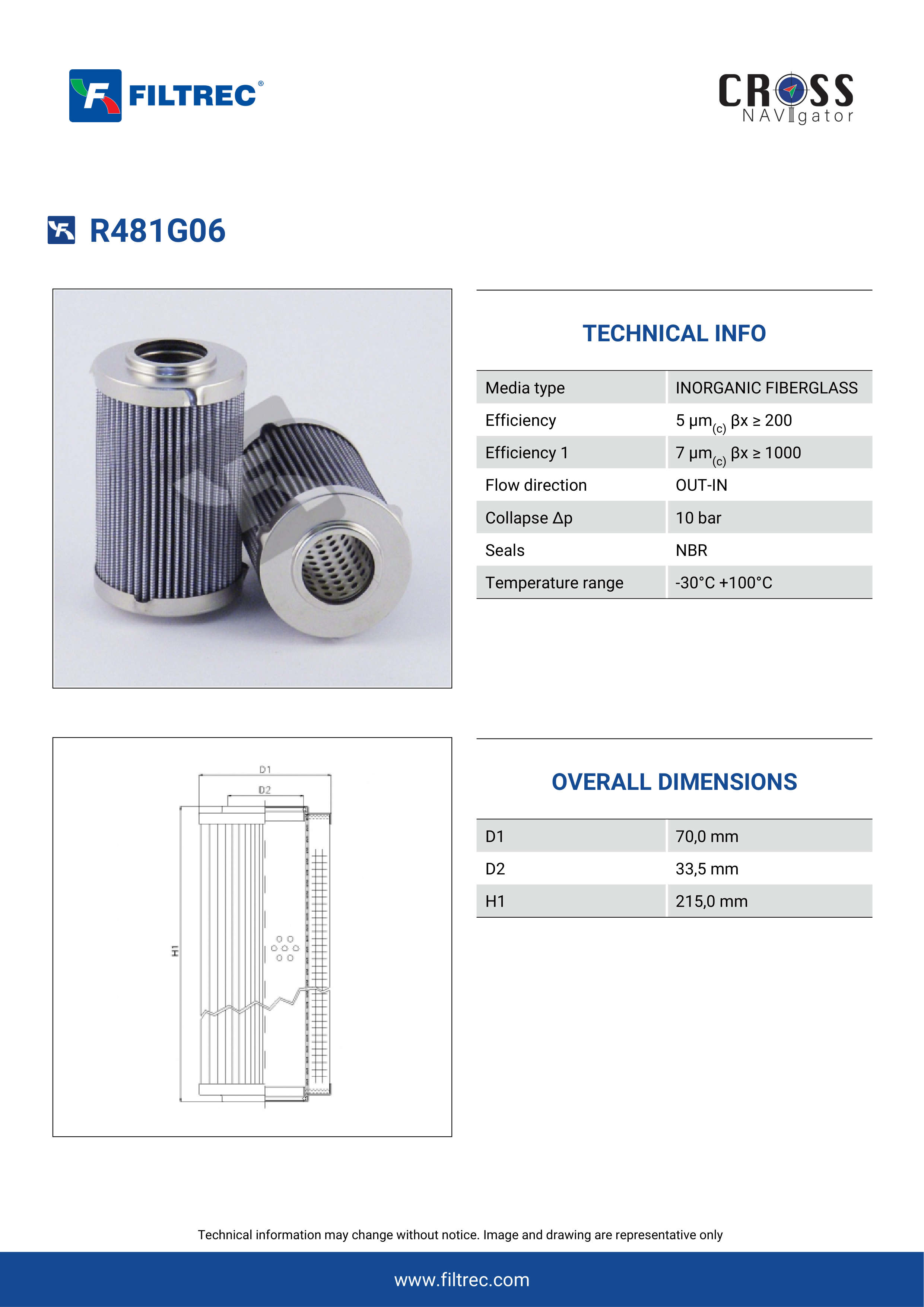 The efficiency of the element is shown using the Micron (µ) and Beta (β) ratings. The micron rating indicates the size of the particle being filtered and the beta rating the efficiency, calculated as 1/β.