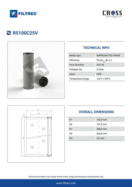 Engineered with their high performance media and a durable design, the R5100C25V provides reliable and consistent performance over its lifespan, even in harsh operating environments. When you order from FilterFinder, you can trust that you are getting a reliable and high-quality replacement filter that will keep your system running smoothly.