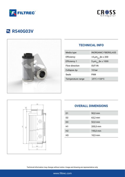 Engineered with their high performance media and a durable design, the R540G03V provides reliable and consistent performance over its lifespan, even in harsh operating environments. When you order from FilterFinder, you can trust that you are getting a reliable and high-quality replacement filter that will keep your system running smoothly.