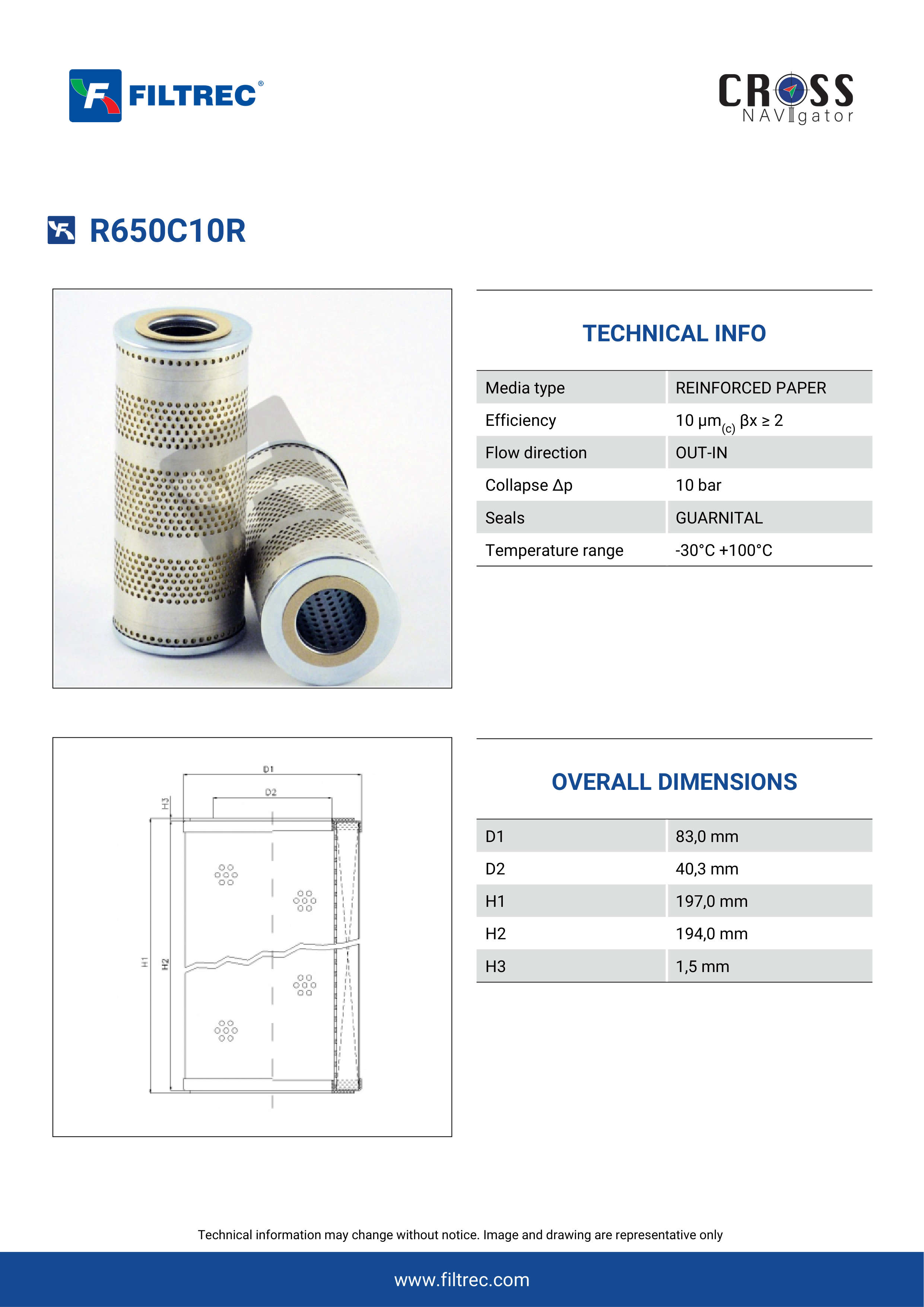 Genuine Filtrec R650C10R. This Filtrec element is designed to meet or exceed the quality and performance of brand OEM’s ensuring superior filtration performance and long-lasting durability.