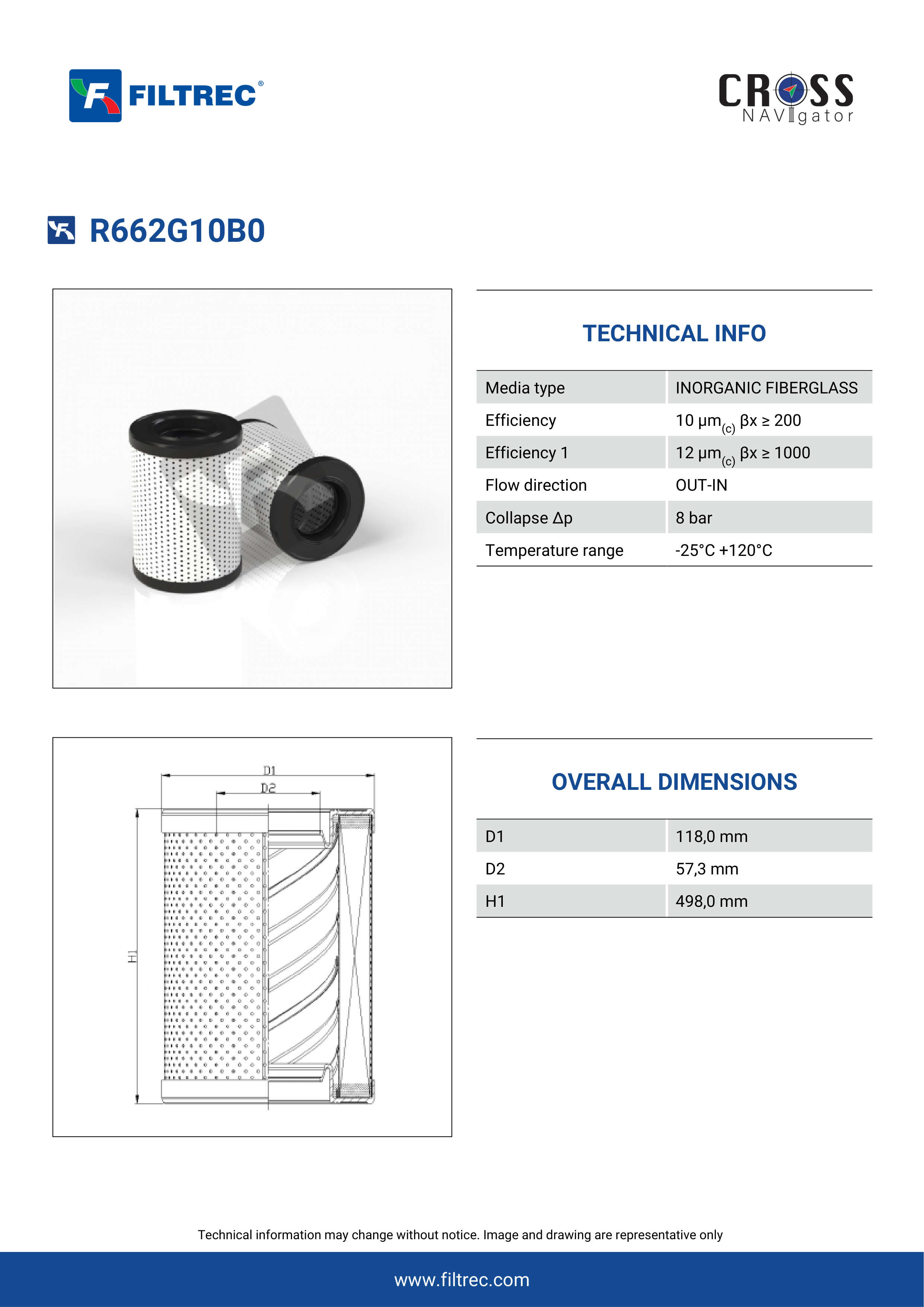Genuine Filtrec R662G10B0. This Filtrec element is designed to meet or exceed the quality and performance of brand OEM’s ensuring superior filtration performance and long-lasting durability.Engineered with their high performance media and a durable design, the R662G10B0 provides reliable and consistent performance over its lifespan, even in harsh operating environments. When you order from FilterFinder, you can trust that you are getting a reliable and high-quality replacement filter that will keep your system running smoothly.