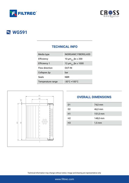 Engineered with their high performance media and a durable design, the WG591 provides reliable and consistent performance over its lifespan, even in harsh operating environments. When you order from FilterFinder, you can trust that you are getting a reliable and high-quality replacement filter that will keep your system running smoothly.