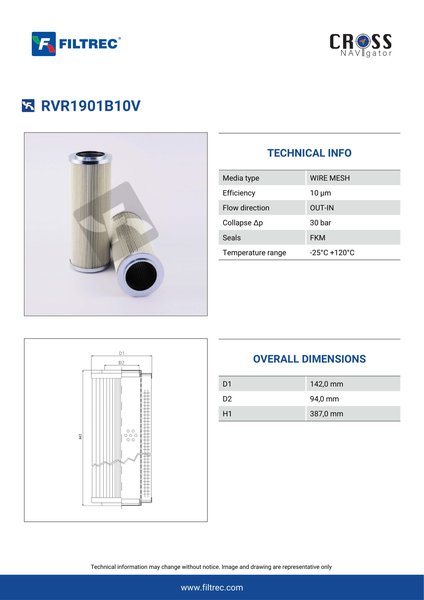 Genuine Filtrec RVR1901B10V. This Filtrec element is designed to meet or exceed the quality and performance of brand OEM’s ensuring superior filtration performance and long-lasting durability.