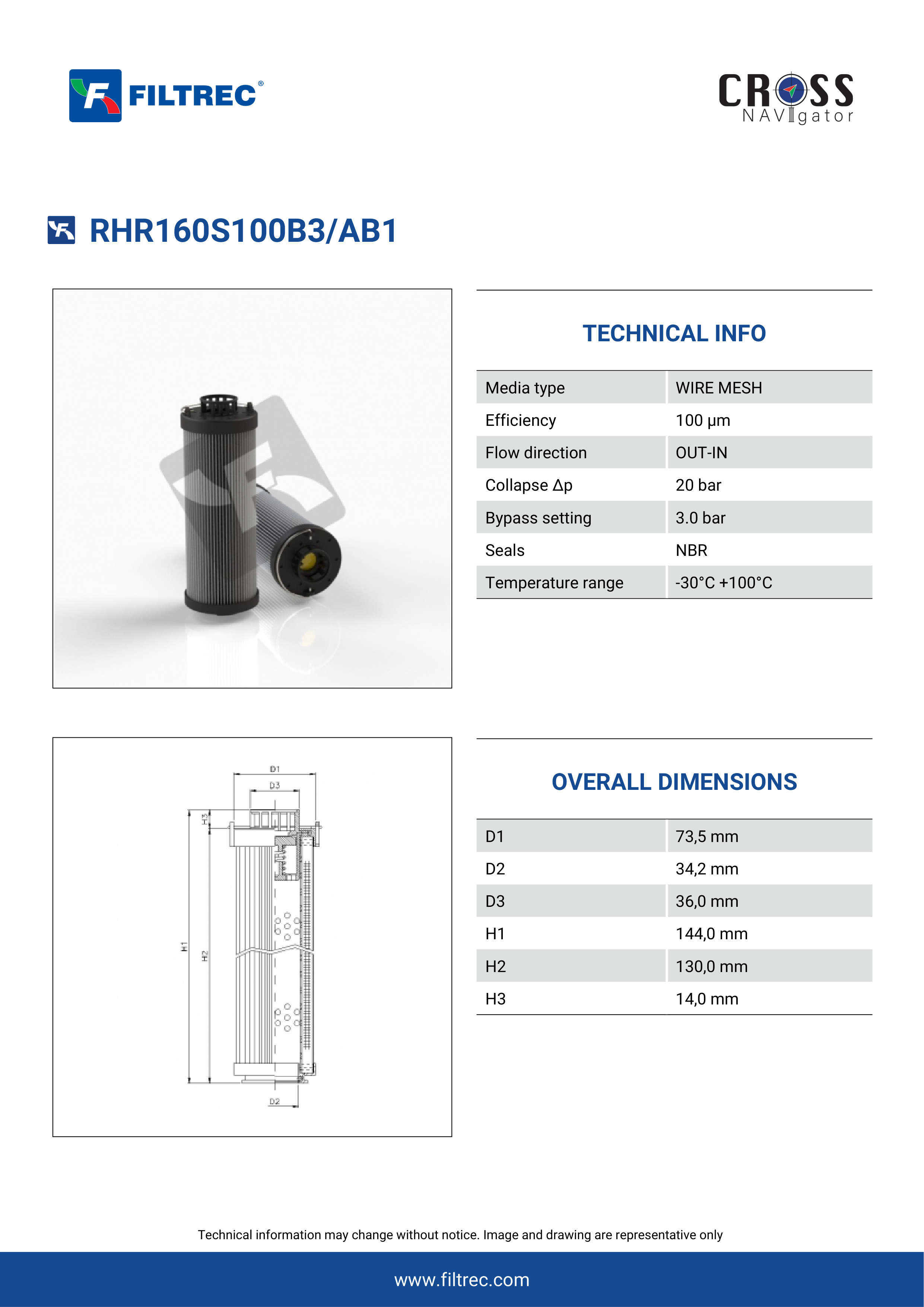 The efficiency of the element is shown using the Micron (µ) and Beta (β) ratings. The micron rating indicates the size of the particle being filtered and the beta rating the efficiency, calculated as 1/β.
