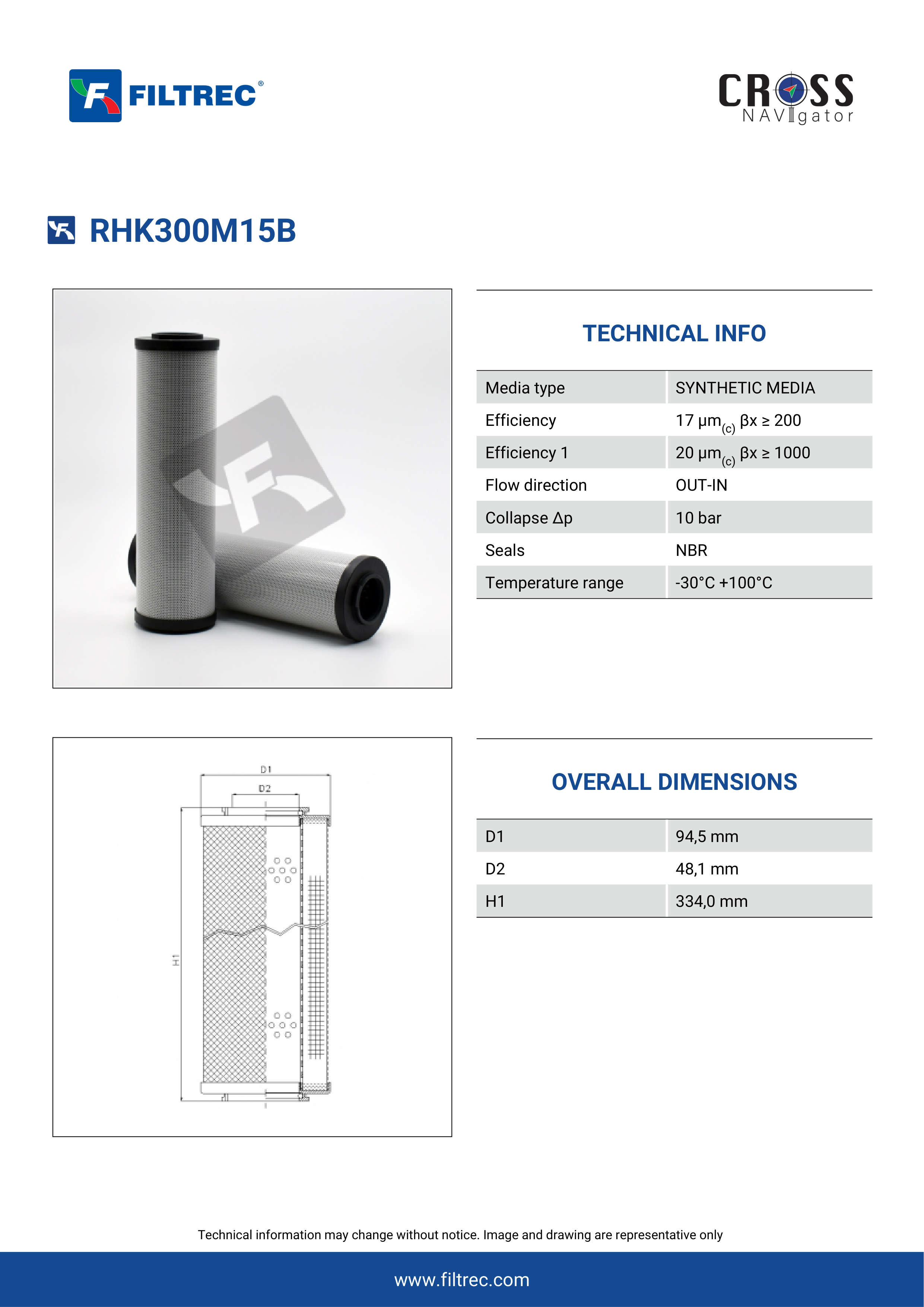 Genuine Filtrec RHK300M15B