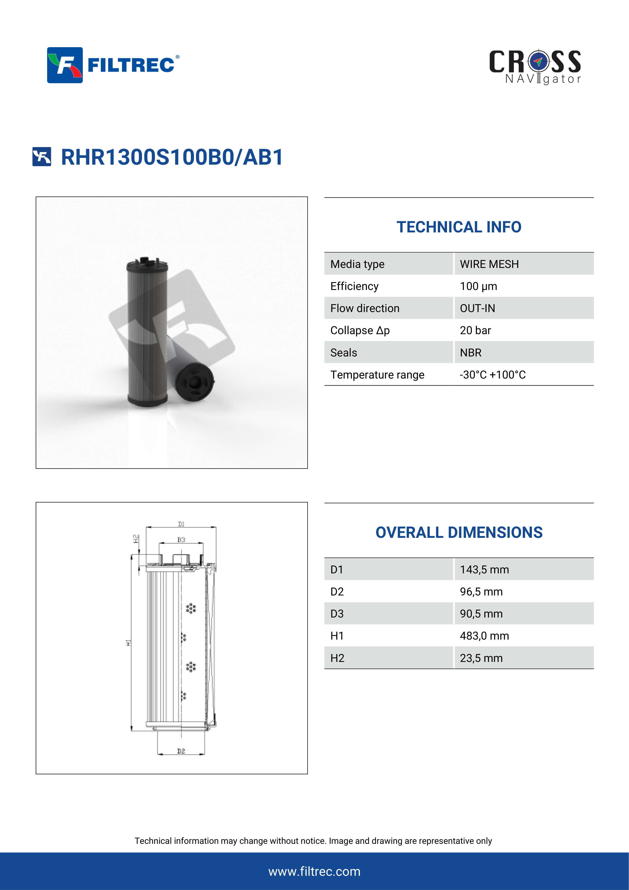 Genuine Filtrec RHR1300S100B0/AB1