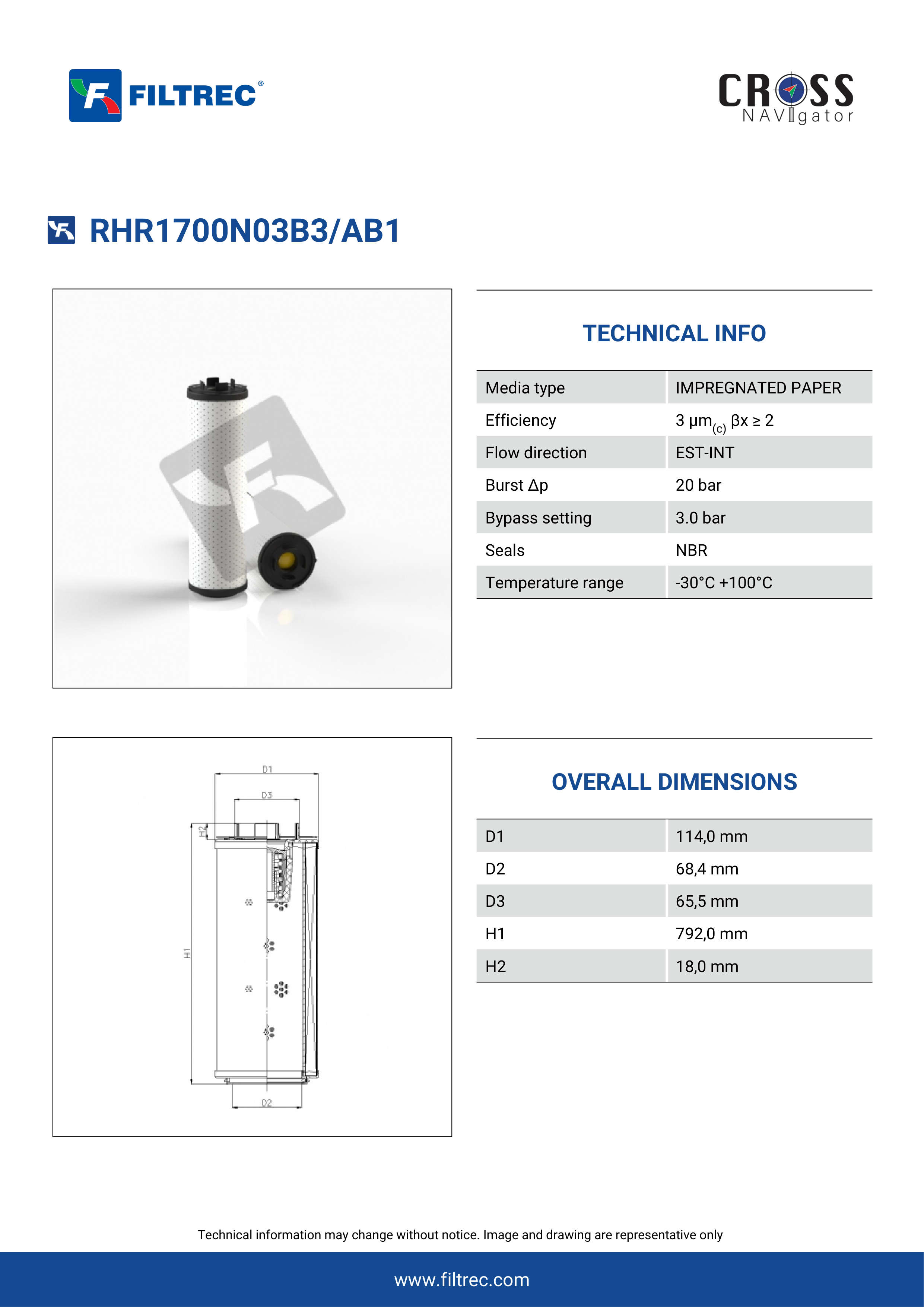 Genuine Filtrec RHR1700N03B3/AB1. This Filtrec element is designed to meet or exceed the quality and performance of brand OEM’s ensuring superior filtration performance and long-lasting durability.
