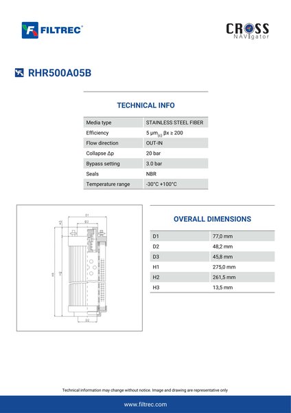 Engineered with their high performance media and a durable design, the RHR500A05B provides reliable and consistent performance over its lifespan, even in harsh operating environments. When you order from FilterFinder, you can trust that you are getting a reliable and high-quality replacement filter that will keep your system running smoothly.