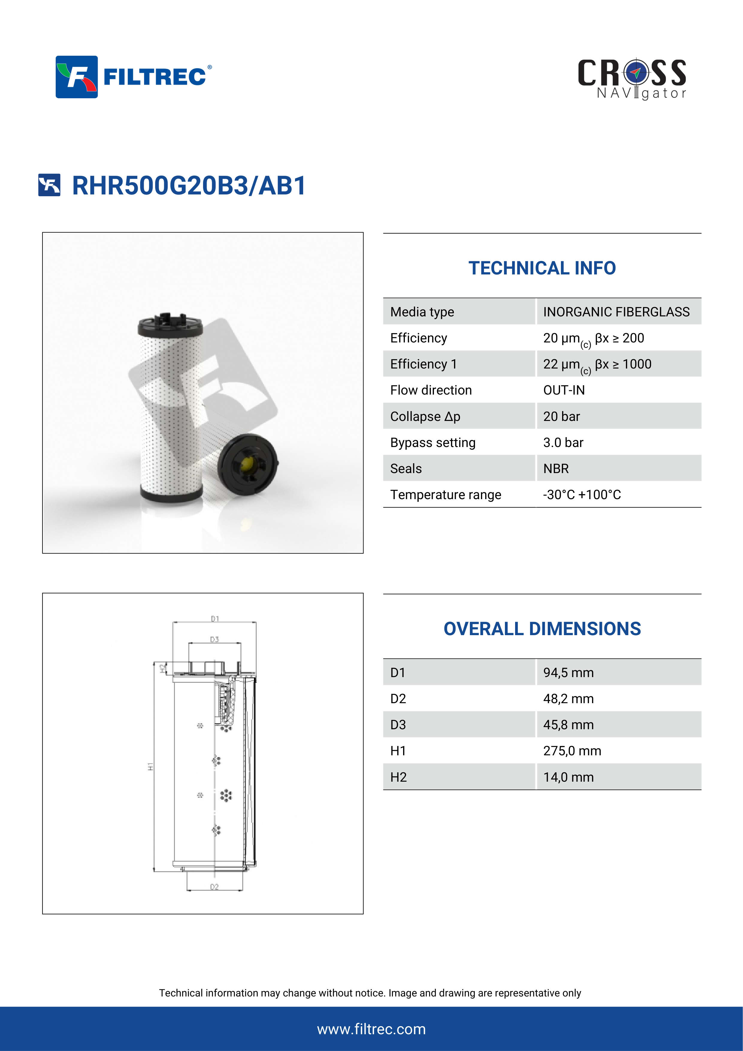 Genuine Filtrec RHR500G20B3/AB1. This Filtrec element is designed to meet or exceed the quality and performance of brand OEM’s ensuring superior filtration performance and long-lasting durability.Engineered with their high performance media and a durable design, the RHR500G20B3/AB1 provides reliable and consistent performance over its lifespan, even in harsh operating environments. When you order from FilterFinder, you can trust that you are getting a reliable and high-quality replacement filter that will keep your system running smoothly.