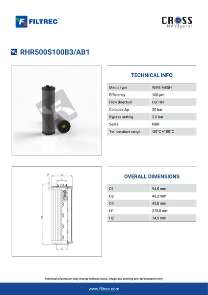 The efficiency of the element is shown using the Micron (µ) and Beta (β) ratings. The micron rating indicates the size of the particle being filtered and the beta rating the efficiency, calculated as 1/β.