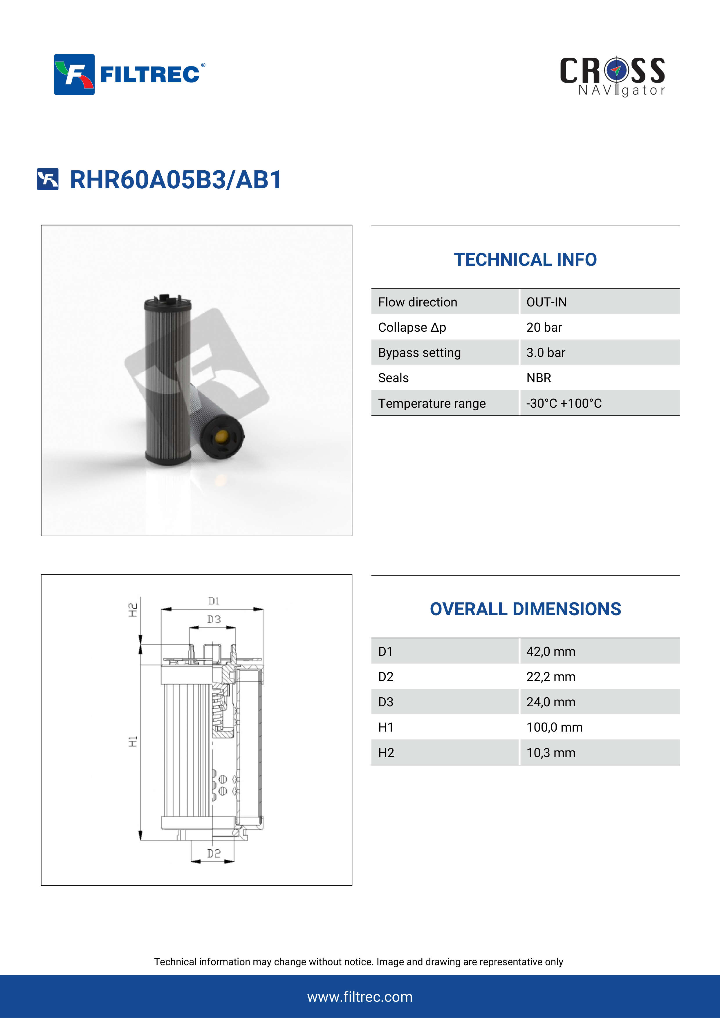 Genuine Filtrec RHR60A05B3/AB1. This Filtrec element is designed to meet or exceed the quality and performance of brand OEM’s ensuring superior filtration performance and long-lasting durability.