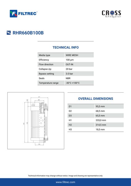 Genuine Filtrec RHR660B100B