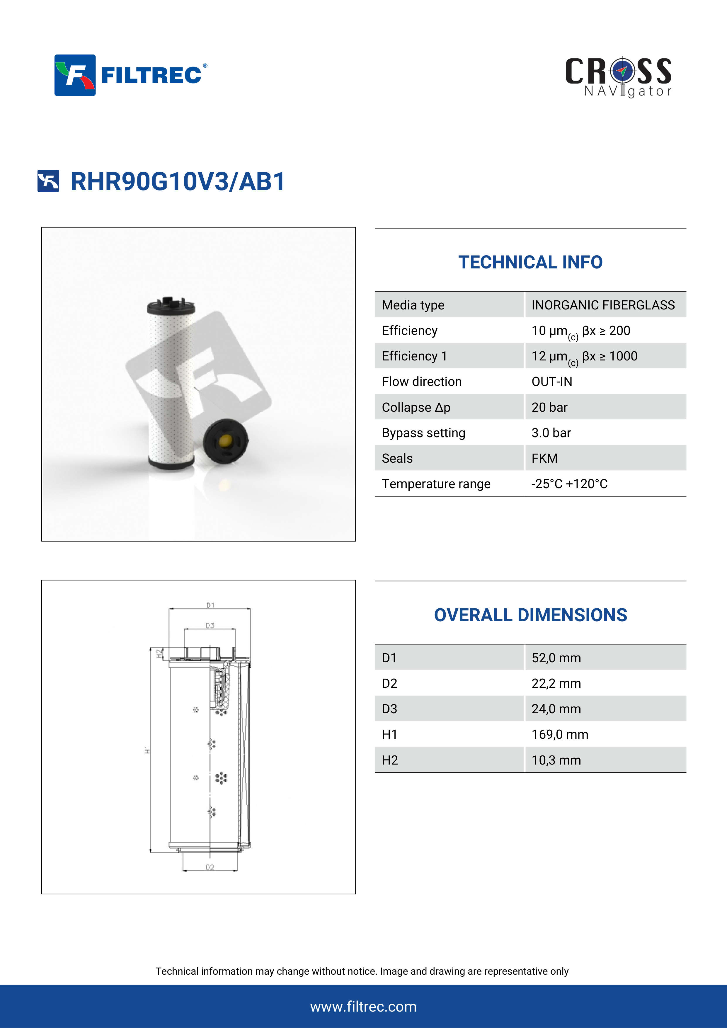 Genuine Filtrec RHR90G10V3/AB1. This Filtrec element is designed to meet or exceed the quality and performance of brand OEM’s ensuring superior filtration performance and long-lasting durability.Engineered with their high performance media and a durable design, the RHR90G10V3/AB1 provides reliable and consistent performance over its lifespan, even in harsh operating environments. When you order from FilterFinder, you can trust that you are getting a reliable and high-quality replacement filter that will keep your system running smoothly.