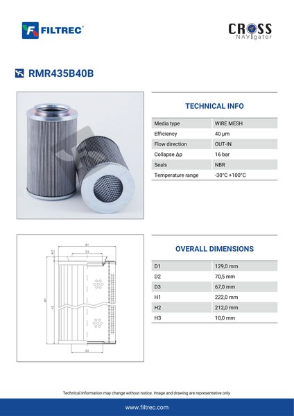 Engineered with their high performance media and a durable design, the RMR435B40B provides reliable and consistent performance over its lifespan, even in harsh operating environments. When you order from FilterFinder, you can trust that you are getting a reliable and high-quality replacement filter that will keep your system running smoothly.