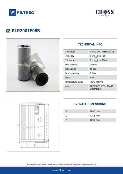 Engineered with their high performance media and a durable design, the RLR2001E05B provides reliable and consistent performance over its lifespan, even in harsh operating environments. When you order from FilterFinder, you can trust that you are getting a reliable and high-quality replacement filter that will keep your system running smoothly.