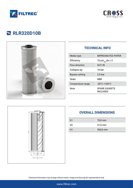 Genuine Filtrec RLR320D10B. This Filtrec element is designed to meet or exceed the quality and performance of brand OEM’s ensuring superior filtration performance and long-lasting durability.