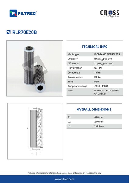 The efficiency of the element is shown using the Micron (µ) and Beta (β) ratings. The micron rating indicates the size of the particle being filtered and the beta rating the efficiency, calculated as 1/β.