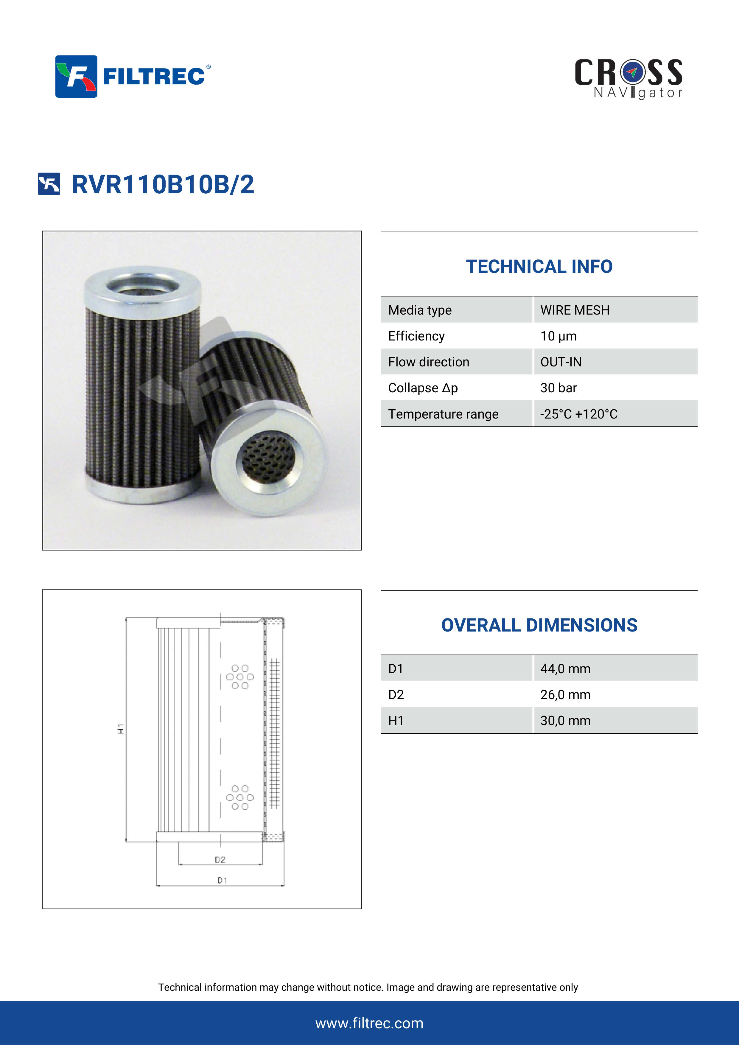 Genuine Filtrec RVR110B10B/2. This Filtrec element is designed to meet or exceed the quality and performance of brand OEM’s ensuring superior filtration performance and long-lasting durability.