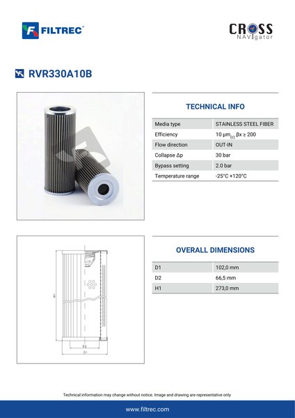Engineered with their high performance media and a durable design, the RVR330A10B provides reliable and consistent performance over its lifespan, even in harsh operating environments. When you order from FilterFinder, you can trust that you are getting a reliable and high-quality replacement filter that will keep your system running smoothly.