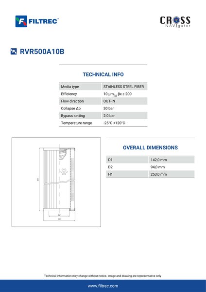 The efficiency of the element is shown using the Micron (µ) and Beta (β) ratings. The micron rating indicates the size of the particle being filtered and the beta rating the efficiency, calculated as 1/β.