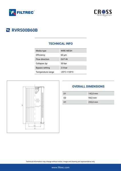The efficiency of the element is shown using the Micron (µ) and Beta (β) ratings. The micron rating indicates the size of the particle being filtered and the beta rating the efficiency, calculated as 1/β.