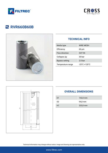 Genuine Filtrec RVR660B60B. This Filtrec element is designed to meet or exceed the quality and performance of brand OEM’s ensuring superior filtration performance and long-lasting durability.