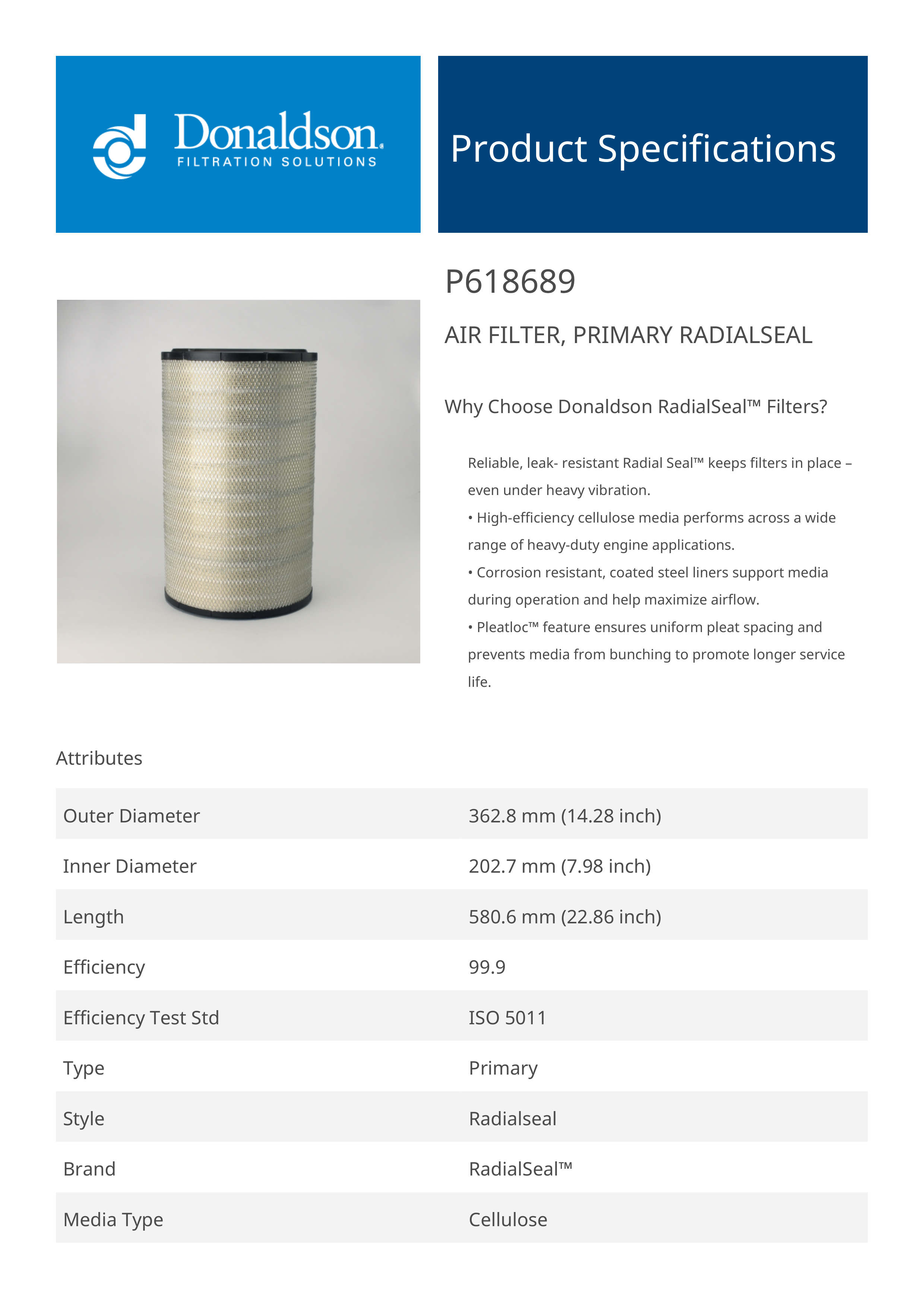 Donaldson P618689 Air Filter, Primary Radialseal | Replaces the Baldwin RS30008