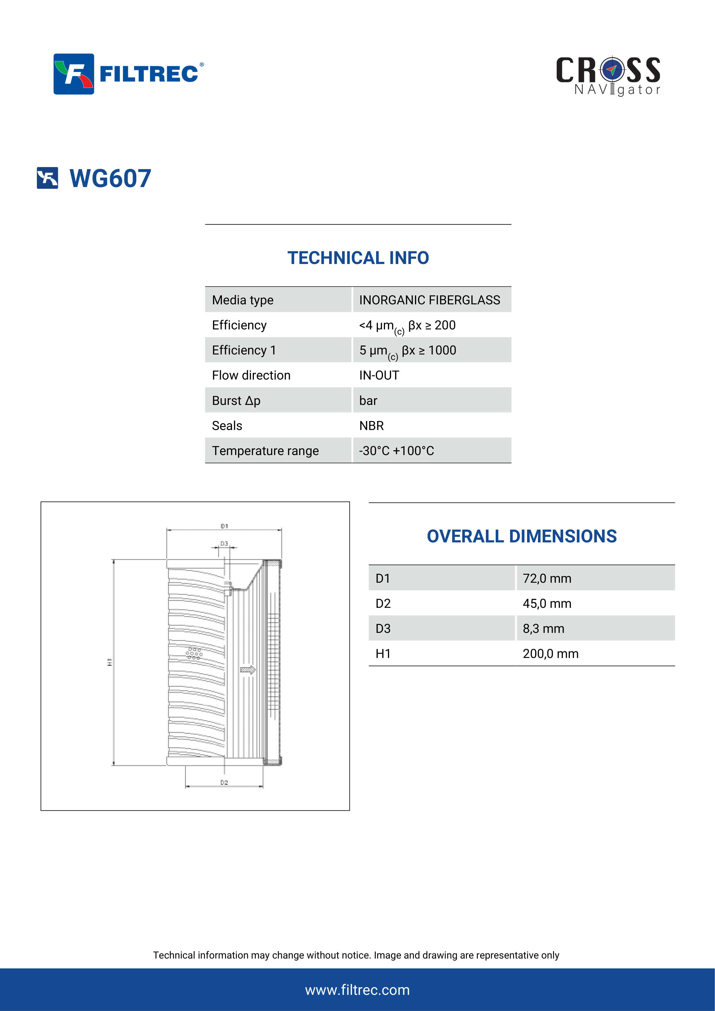 Genuine Filtrec WG607. This Filtrec element is designed to meet or exceed the quality and performance of brand OEM’s ensuring superior filtration performance and long-lasting durability.