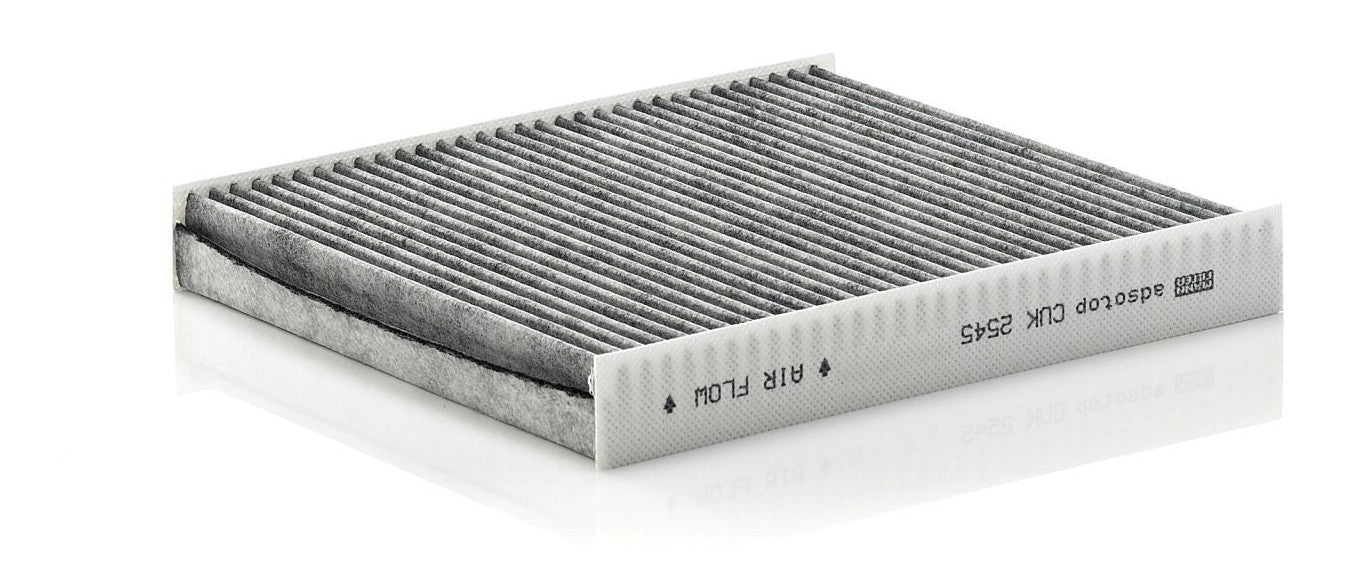 Biofunctional MANN-FILTER FreciousPlus cabin air filters - nearly 100% protection against nitrogen oxides, dust, allergens and mould - harmful gases and unpleasant odours are also eliminated and virus aerosols filtered. The three-layer filter technology absorbs almost 100% of allergens, reduces the growth of molds and bacteria by more than 98% and stops fine dust almost completely.