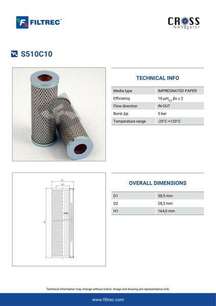 Genuine Filtrec S510C10. This Filtrec element is designed to meet or exceed the quality and performance of brand OEM’s ensuring superior filtration performance and long-lasting durability.