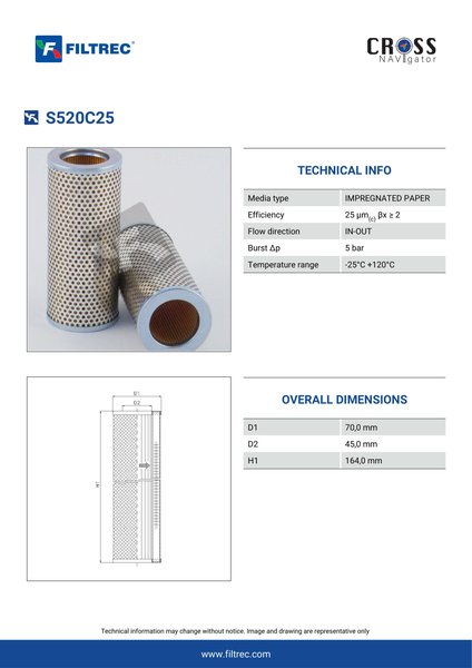 Genuine Filtrec S520C25. This Filtrec element is designed to meet or exceed the quality and performance of brand OEM’s ensuring superior filtration performance and long-lasting durability.