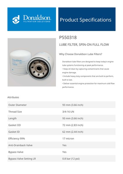 Why Choose Donaldson Lube Filters?Donaldson lube filters are designed to keep today’s engine lube systems functioning at peak performance.