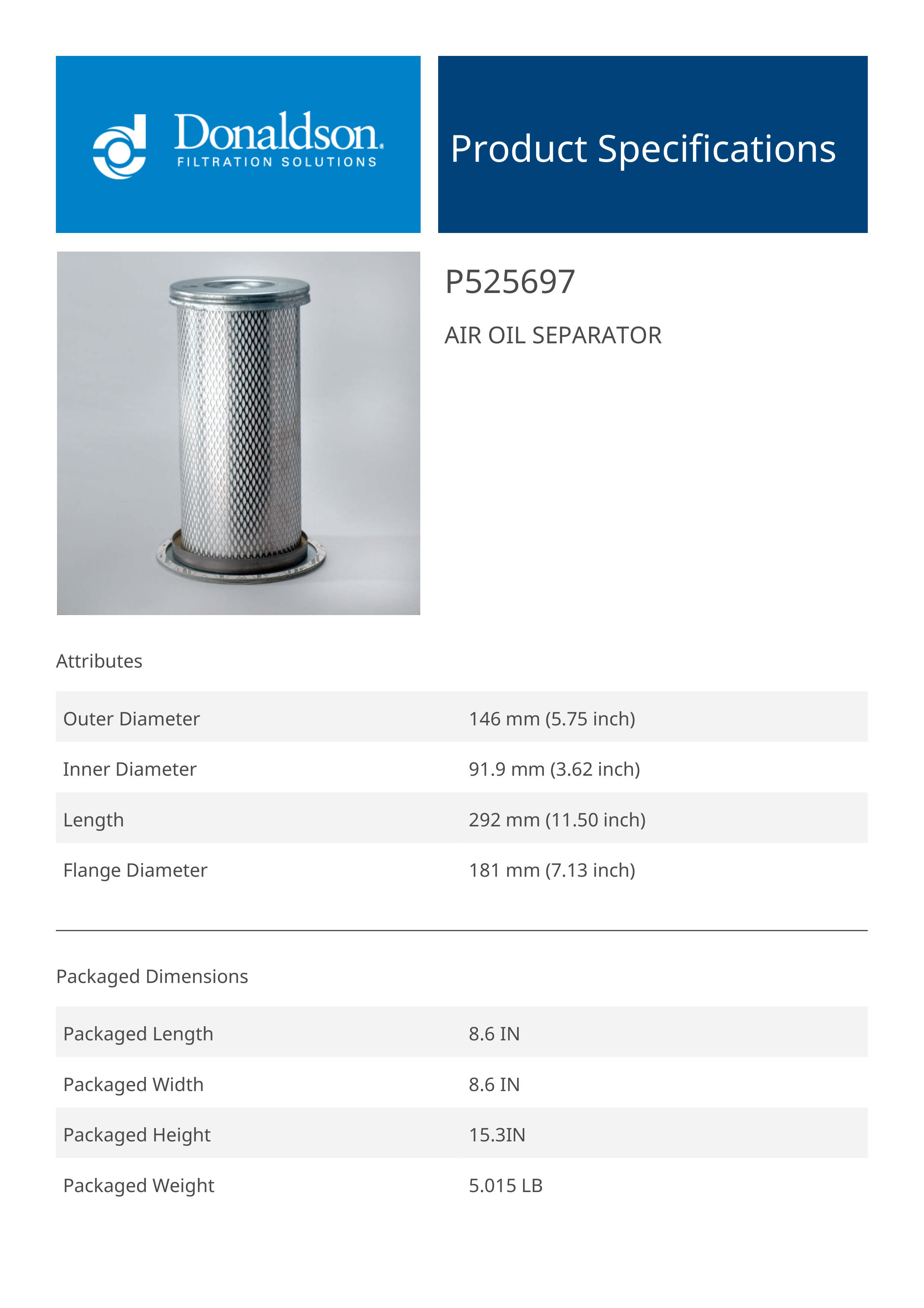 Genuine Donaldson P525697 Air Oil Separator is designed to separate oil from compressed air systems, reducing oil carryover and improving air quality. It enhances system efficiency and protects downstream equipment.