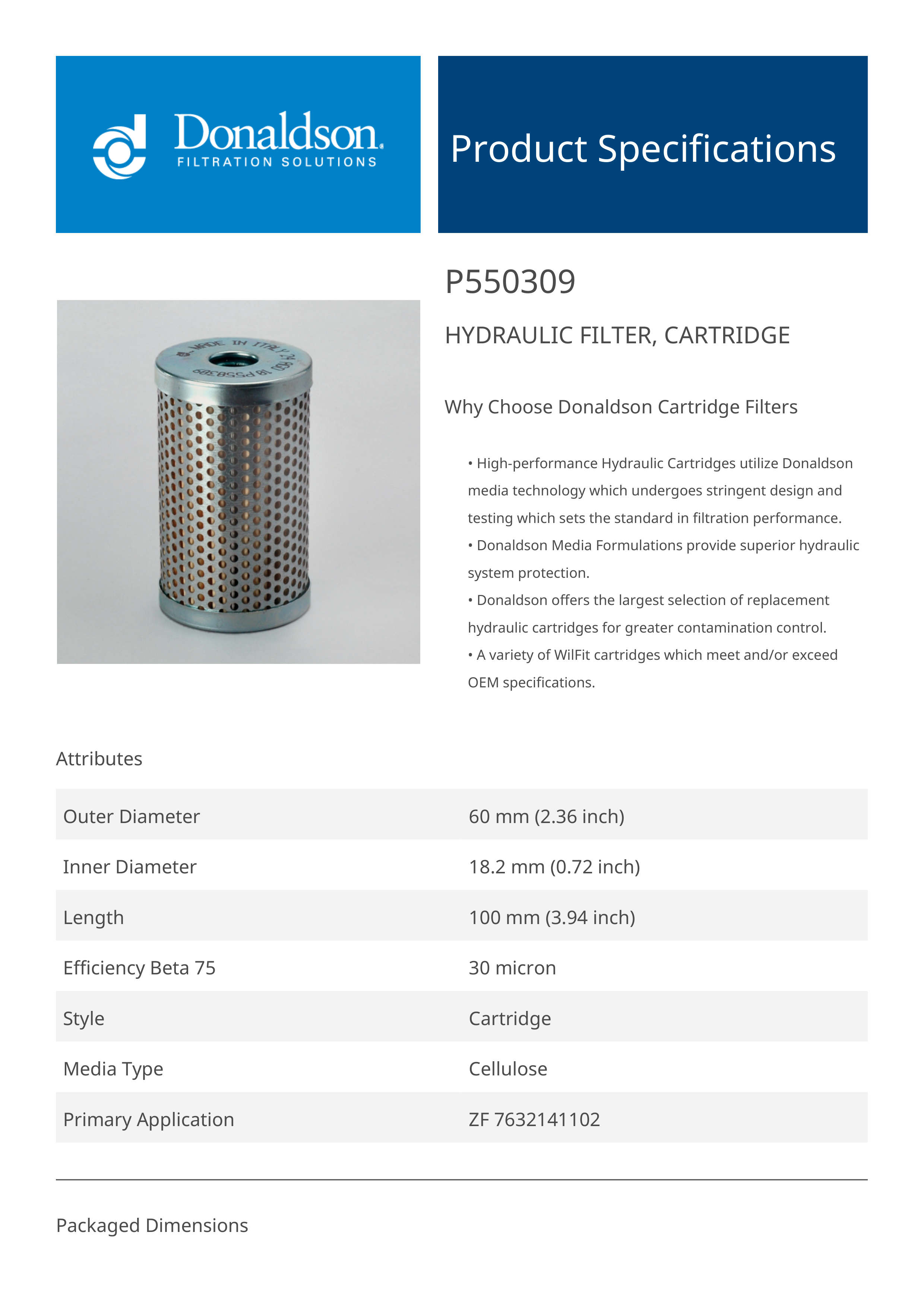 Genuine Donaldson P550309 Hydraulic Filter, Cartridge is designed to provide superior protection for your hydraulic system, effectively capturing contaminants to ensure clean fluid circulation. With high-quality filtration media, it extends equipment life, improves operational efficiency, and maintains fluid cleanliness even in the most demanding environments.