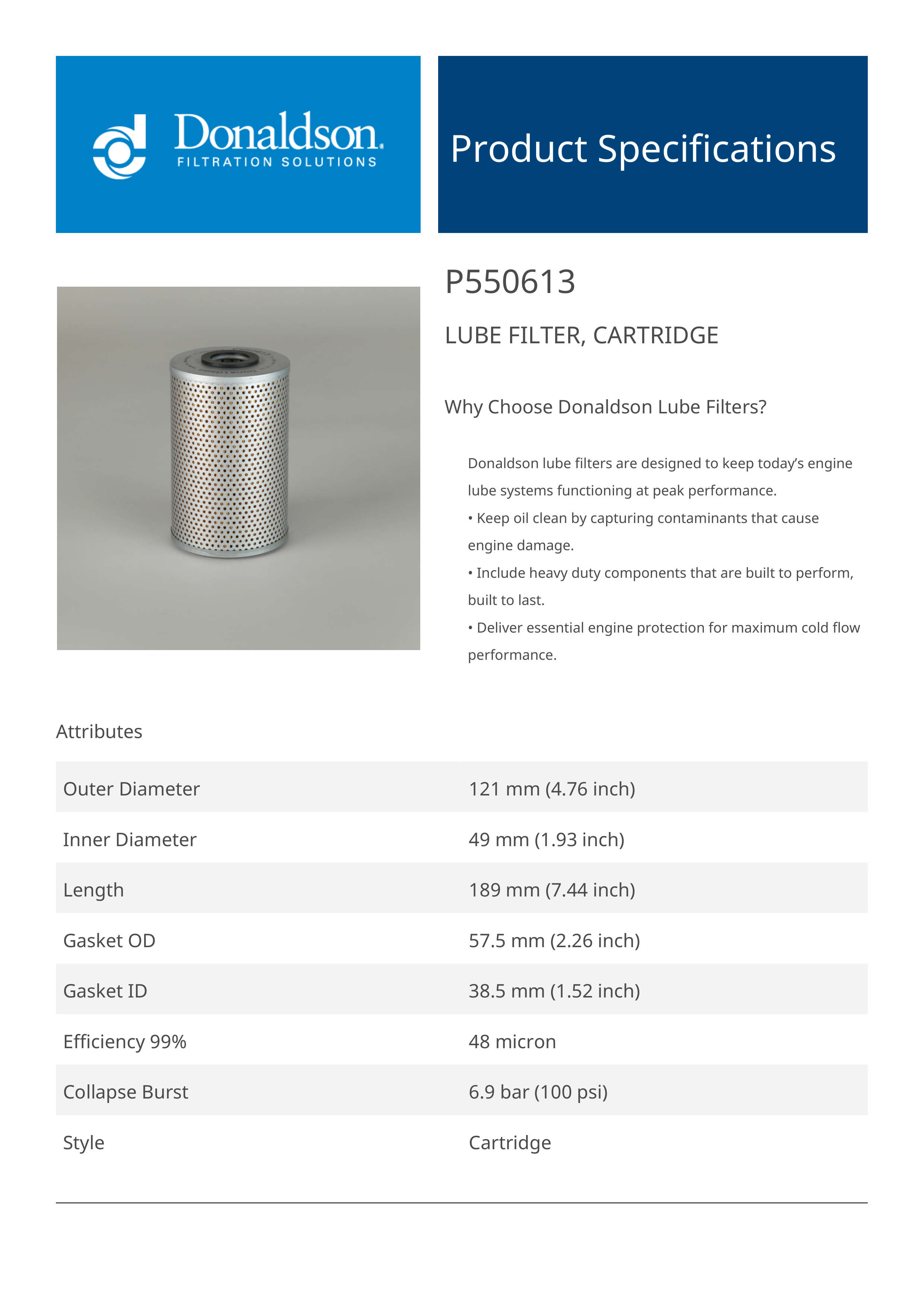 Why Choose Donaldson Lube Filters?Donaldson lube filters are designed to keep today’s engine lube systems functioning at peak performance.