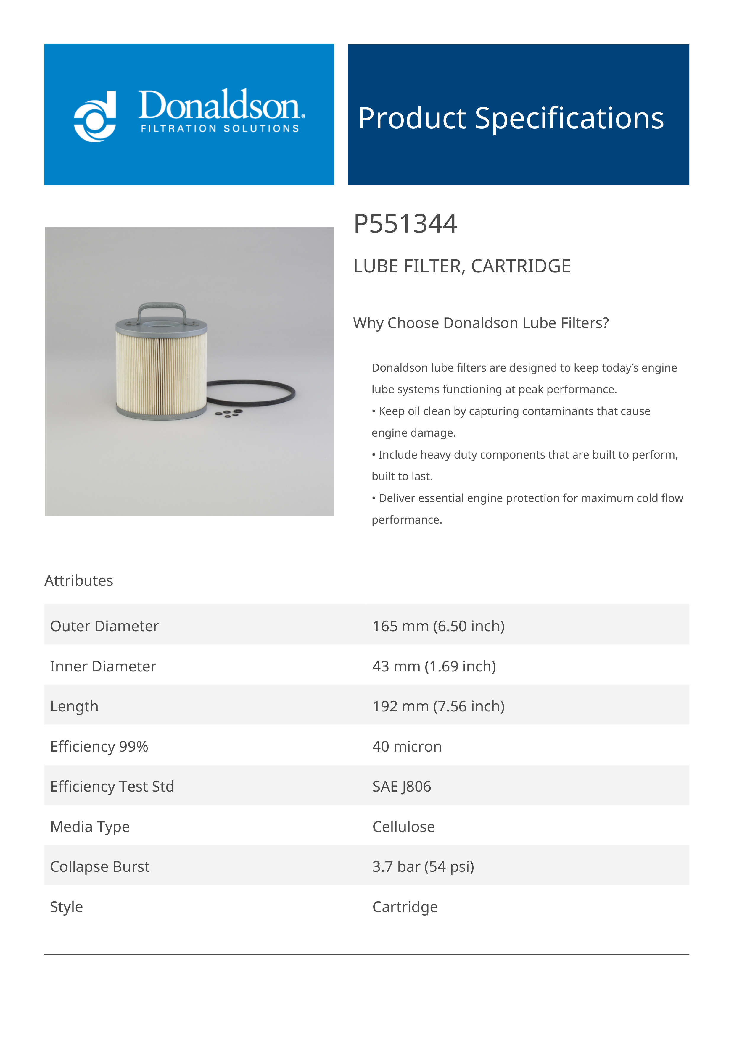 The efficiency of the element is shown using the Micron (µ) and Beta (β) ratings. The micron rating indicates the size of the particle being filtered and the beta rating the efficiency, calculated as 1/β.