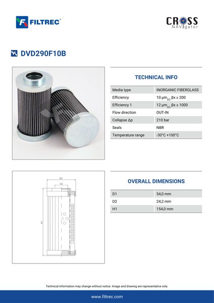 The efficiency of the element is shown using the Micron (µ) and Beta (β) ratings. The micron rating indicates the size of the particle being filtered and the beta rating the efficiency, calculated as 1/β.