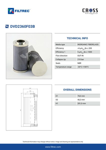 The efficiency of the element is shown using the Micron (µ) and Beta (β) ratings. The micron rating indicates the size of the particle being filtered and the beta rating the efficiency, calculated as 1/β.