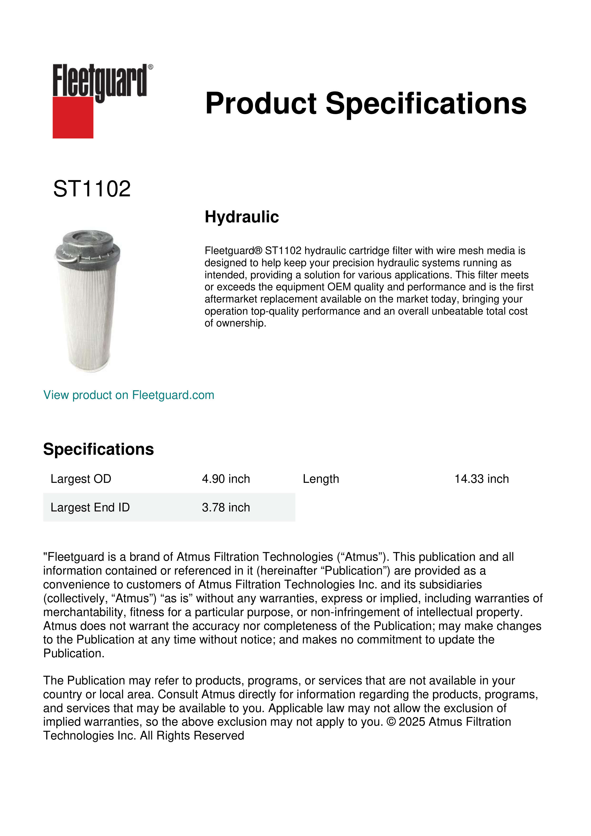 Fleetguard ST1102 Replacement Hydraulic Filters