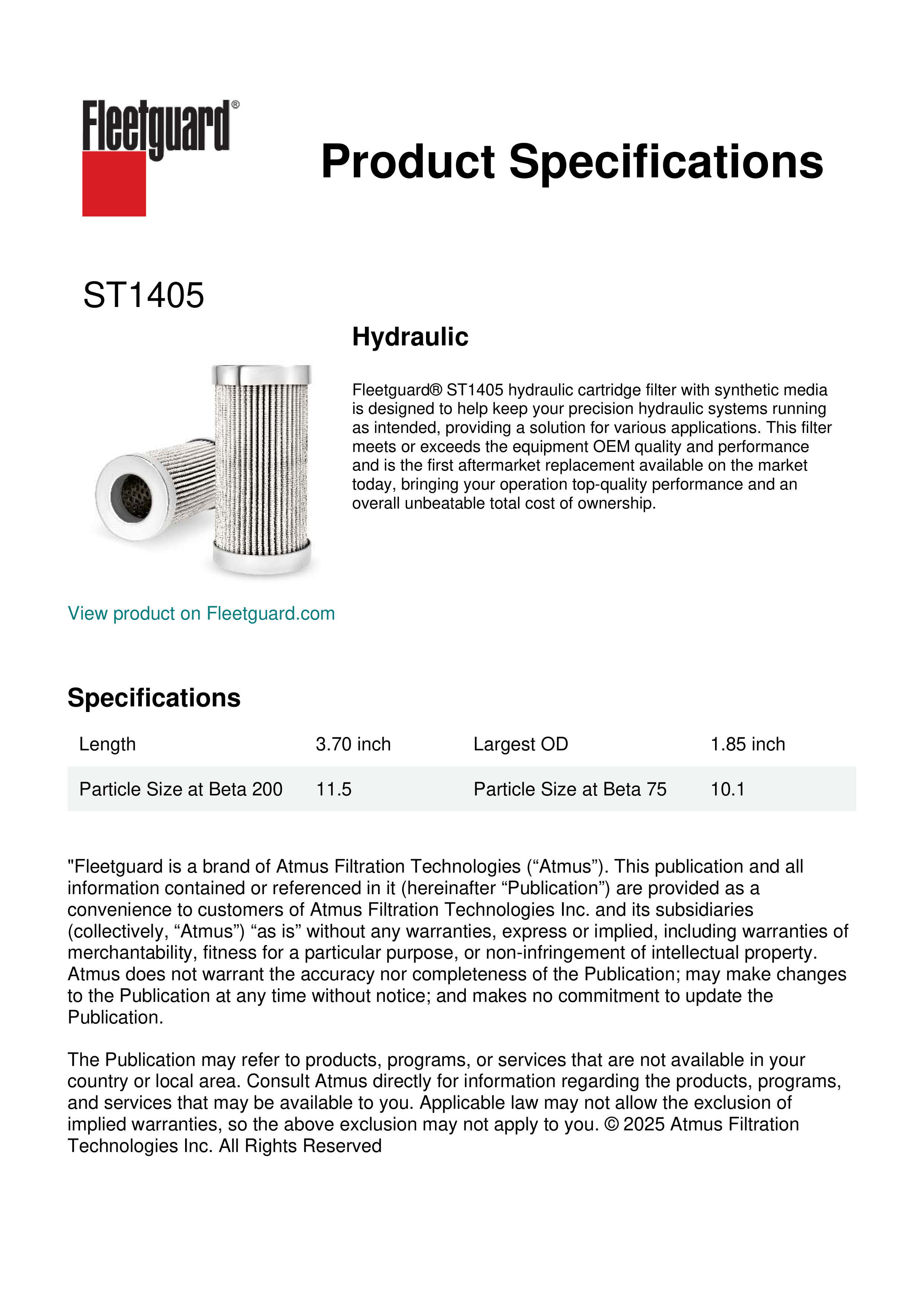 Fleetguard ST1405 Replacement Hydraulic Filters