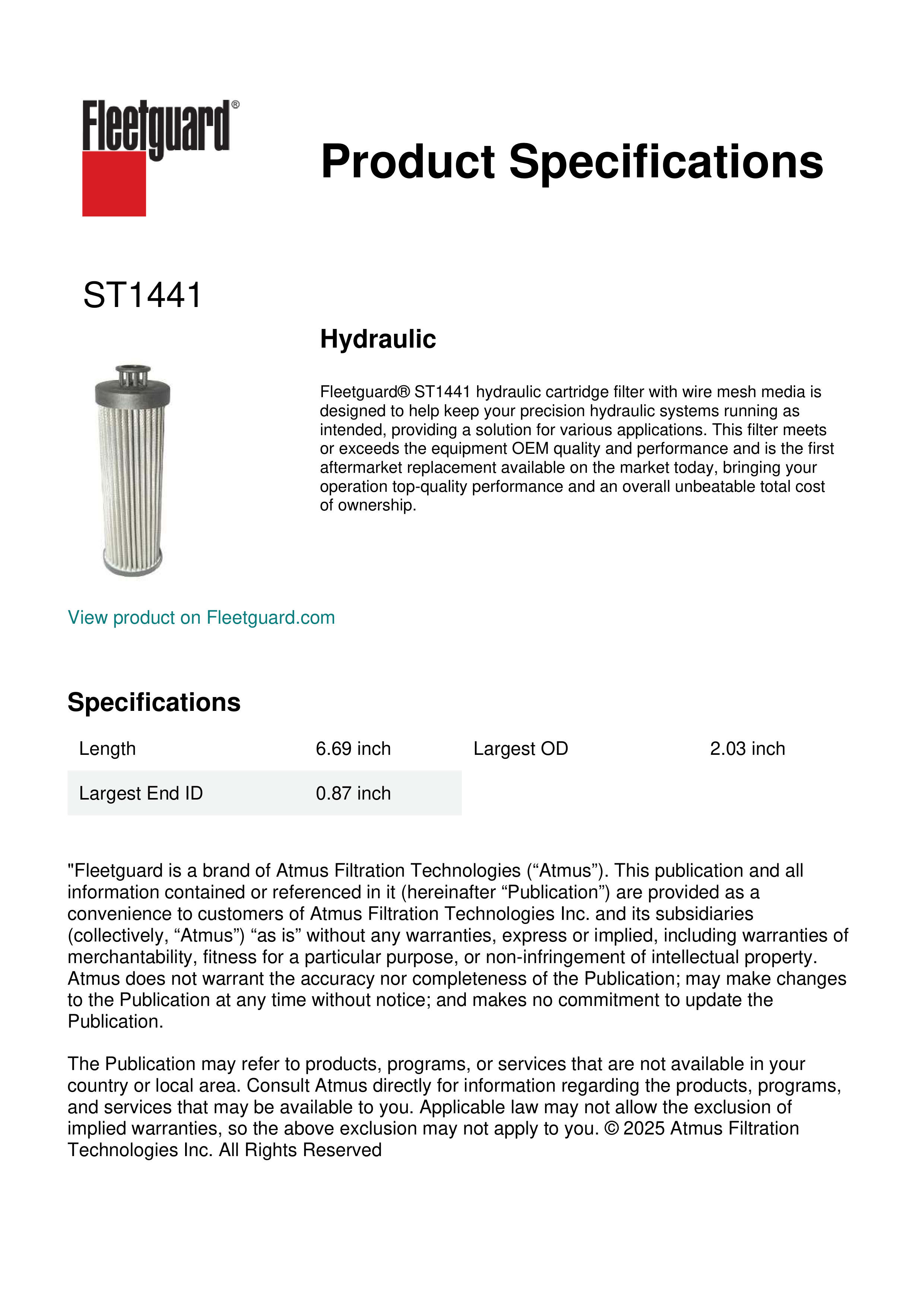 Fleetguard ST1441 Replacement Hydraulic Filters