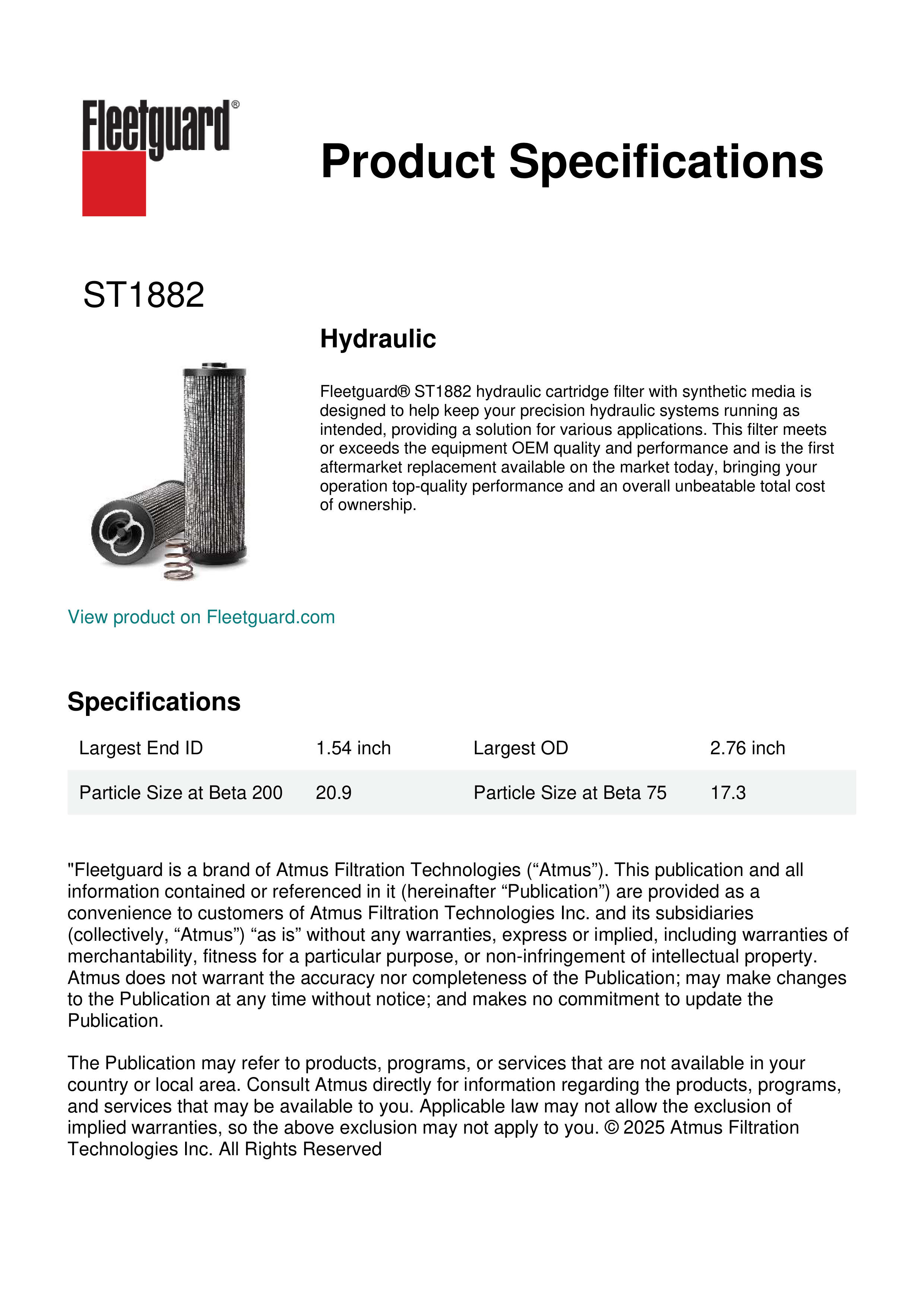 Fleetguard ST1882 Replacement Hydraulic Filters