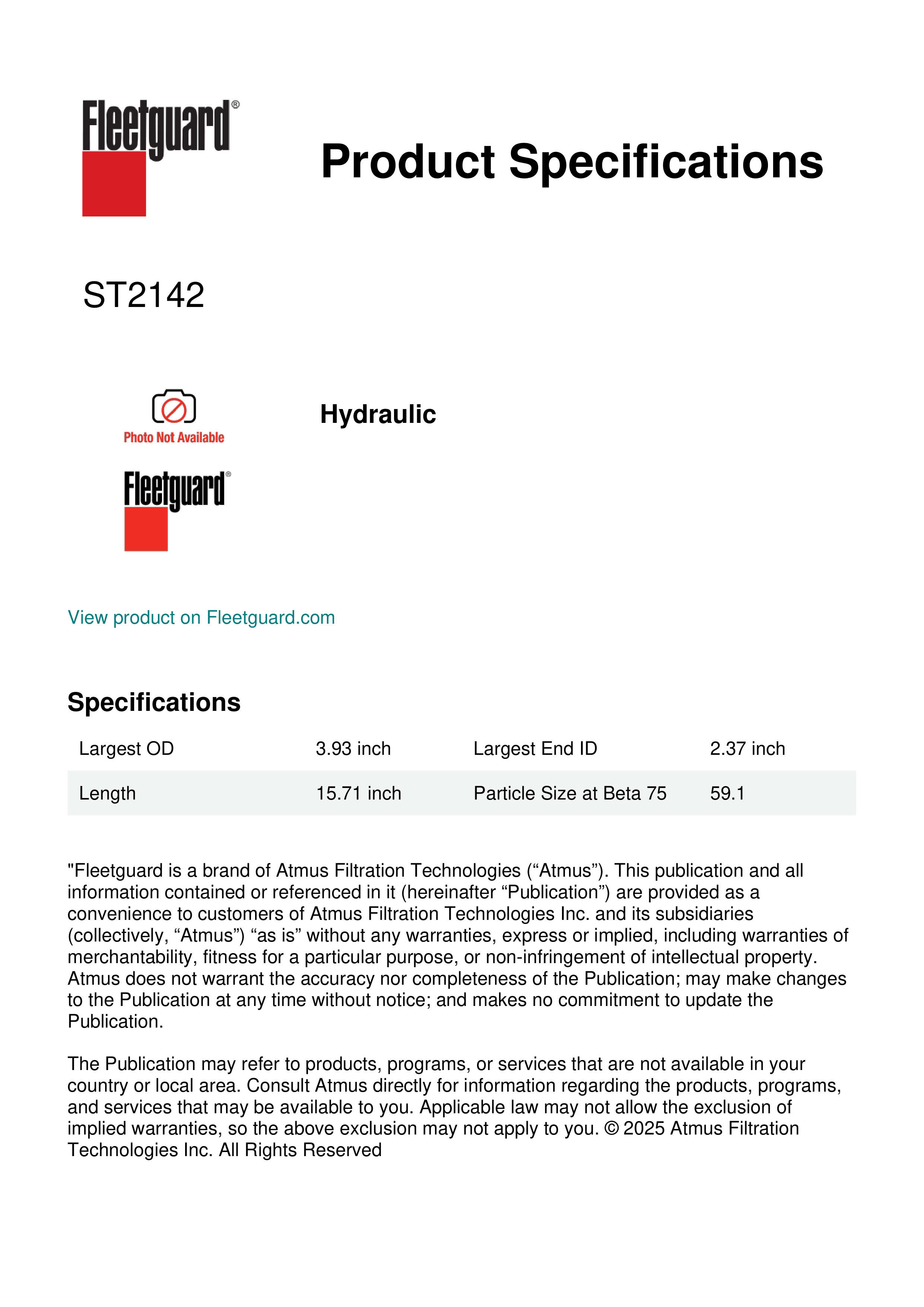 Fleetguard ST2142 Replacement Hydraulic Filters