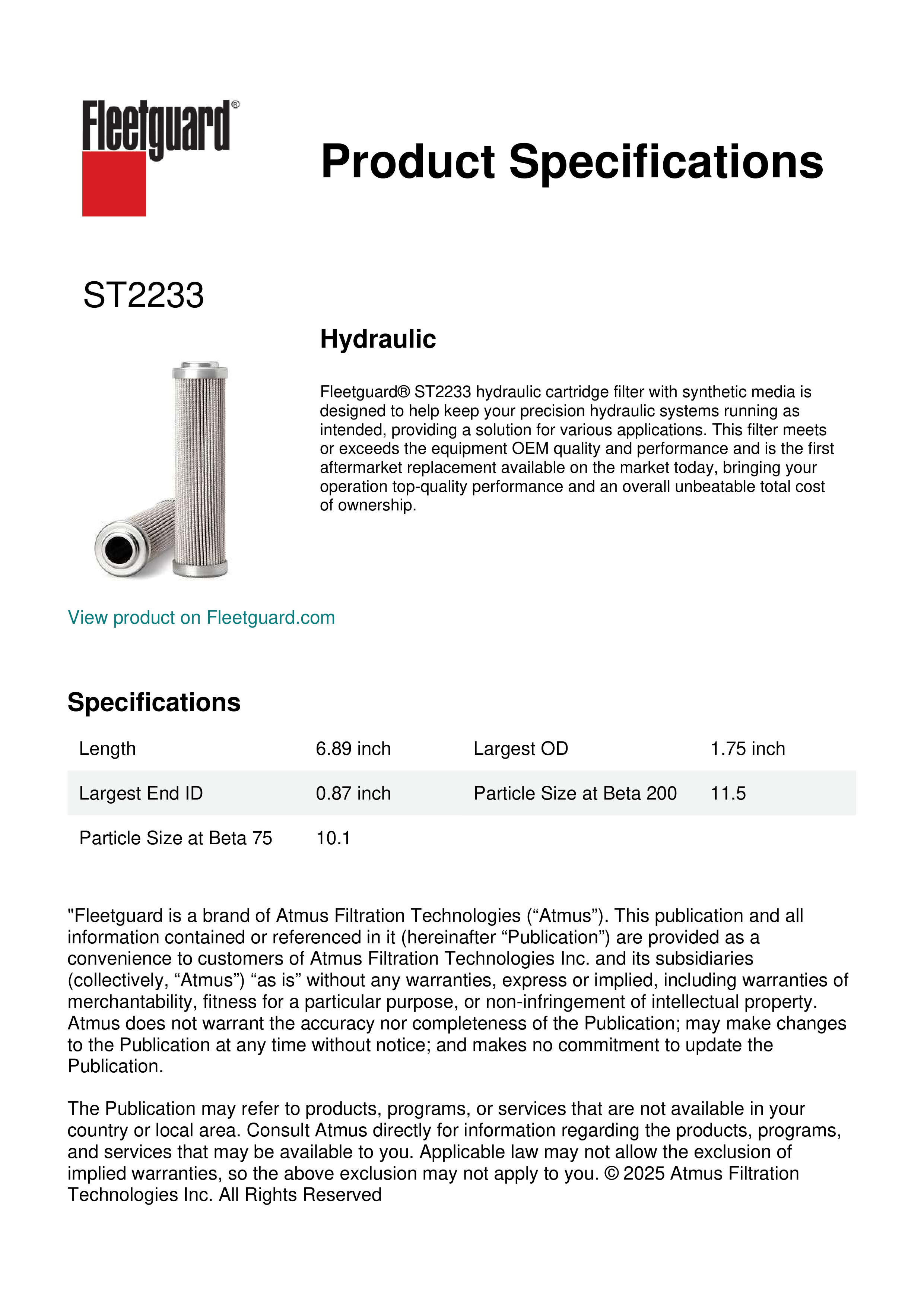 Fleetguard ST2233 Replacement Hydraulic Filters