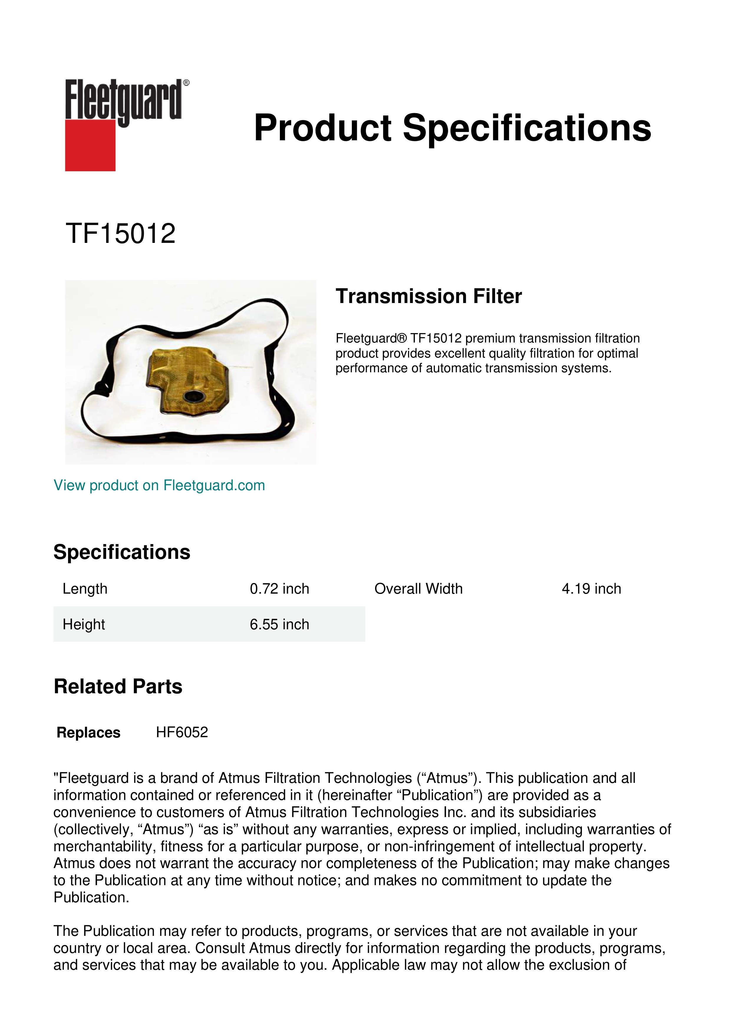 Genuine Fleetguard TF15012