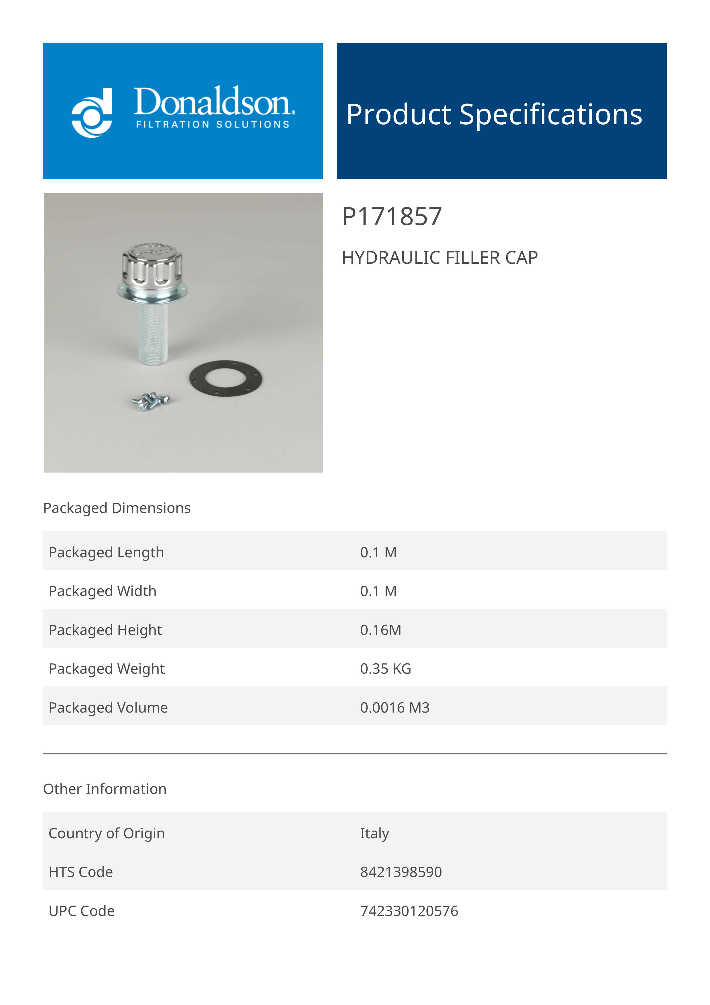 Genuine Donaldson P171857 Hydraulic Filler Cap is engineered to deliver reliable performance and durability across a wide range of applications. Designed with high-quality materials, it ensures consistent functionality while meeting demanding operational requirements.