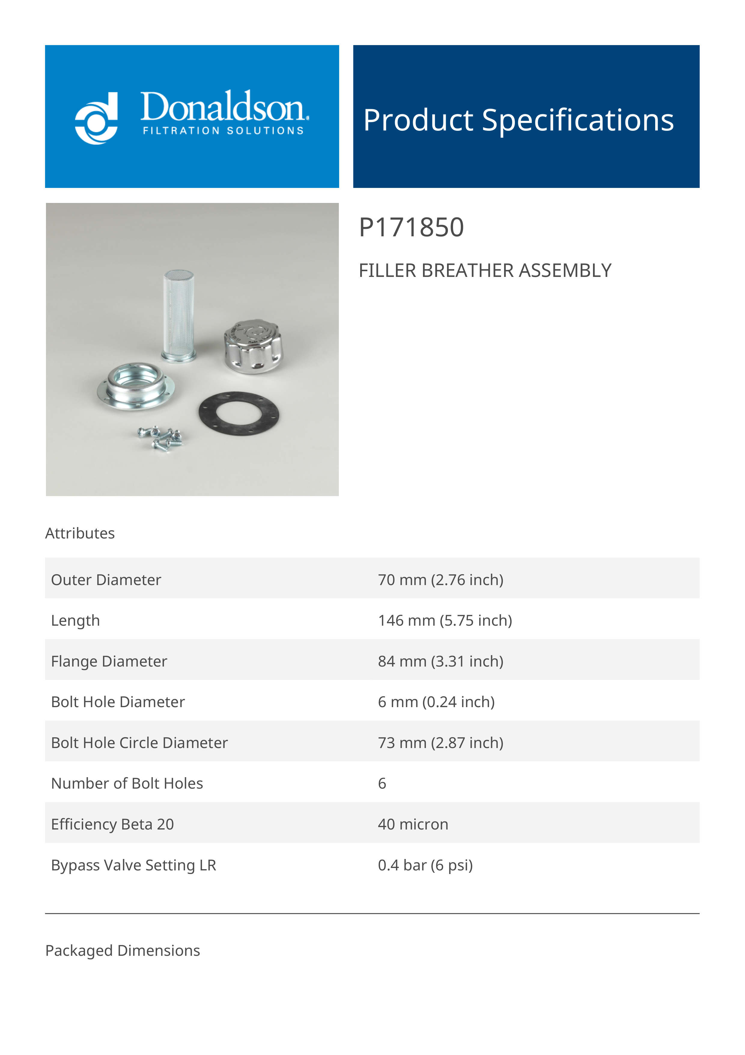 Genuine Donaldson P171850 Filler Breather Assembly is designed to provide reliable performance in filler breather assembly applications. Built with high-quality materials, it ensures consistent functionality and durability.Ideal for industrial, automotive, or heavy-duty environments, this component enhances system performance and longevity.
