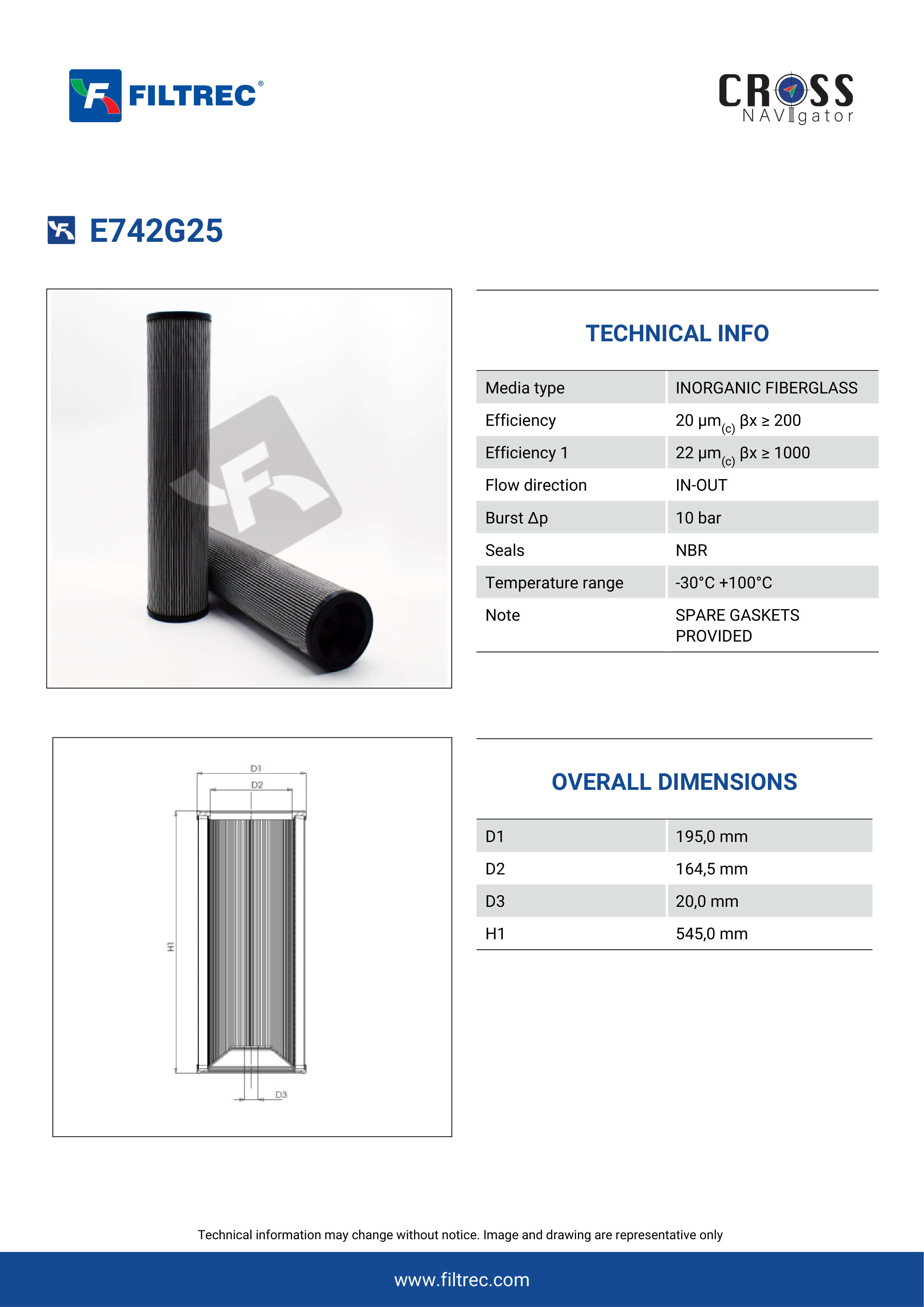 Genuine Filtrec E742G25. This Filtrec element is designed to meet or exceed the quality and performance of brand OEM’s ensuring superior filtration performance and long-lasting durability.