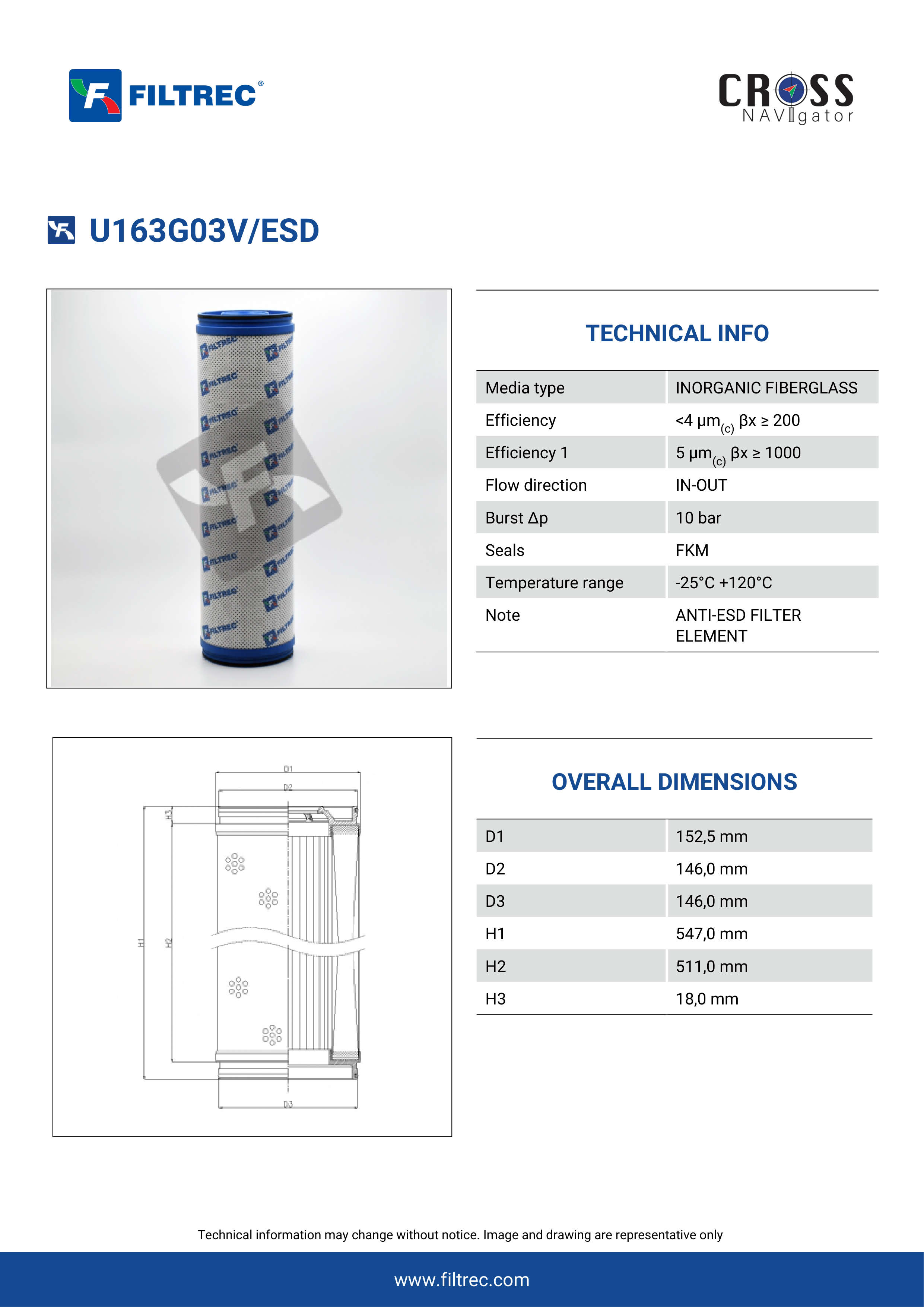 The efficiency of the element is shown using the Micron (µ) and Beta (β) ratings. The micron rating indicates the size of the particle being filtered and the beta rating the efficiency, calculated as 1/β.