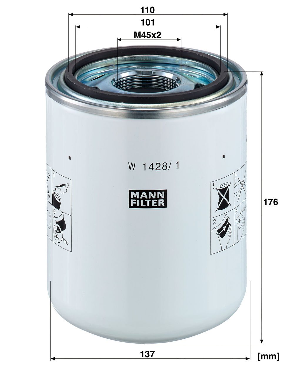 MANN-FILTER spin-on hydraulic filters offer maximum filtration performance and thus ensure trouble-free operation of the hydraulic system. Thanks to the filter medium, which is specially adapted to the intended use, the finest impurities are separated from the hydraulic fluid.Specification